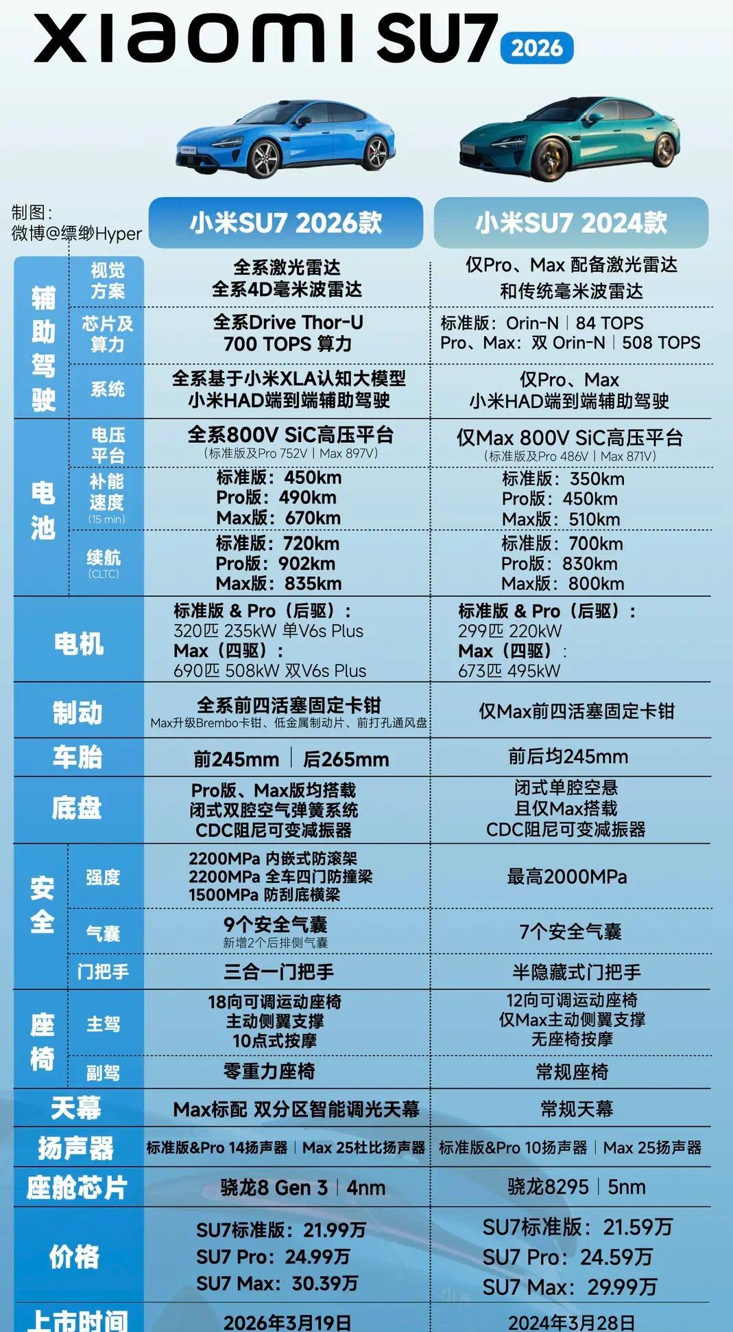 智驾方面,新一代SU7全系标配英伟达Thor芯片,算力700TOPS,配合1个激光雷达、4D毫米波雷达、11个摄像头。